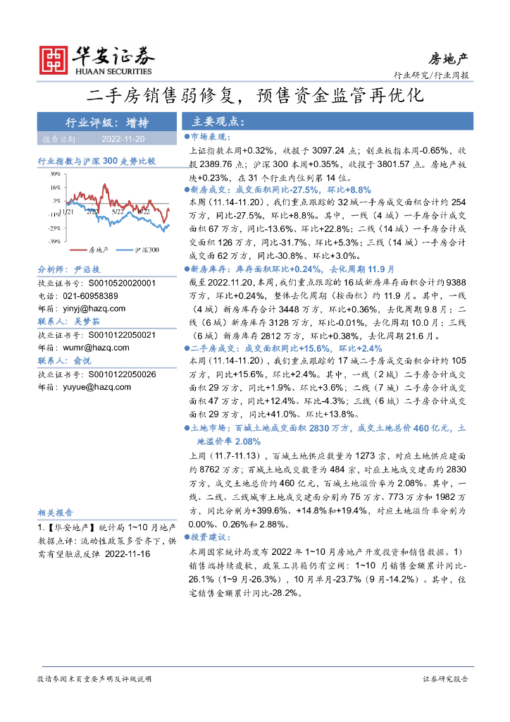 华安证券:房地产行业周报:二手房销售弱修复,预售资金监管再优化.pdf