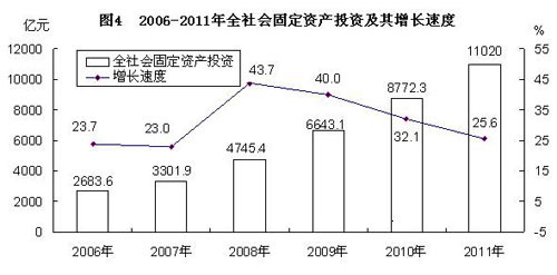 5、从2011年开始,固定资产投资统计的起点标准从计划总投资50万元提高到500万元,因此2011年全社会固定资产投资绝对数与2010年不可比,但比上年增速是按可比口径计算的。与此同时,月度投资统计制度将统计范围从城镇扩大到城镇和农村企事业组织,并定义为“固定资产投资(不含农户)”。