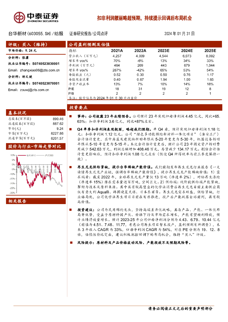 中泰证券:台华新材(603055)-扣非利润靓丽略超预期,持续提示回调后布局机会.pdf