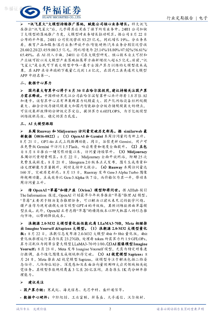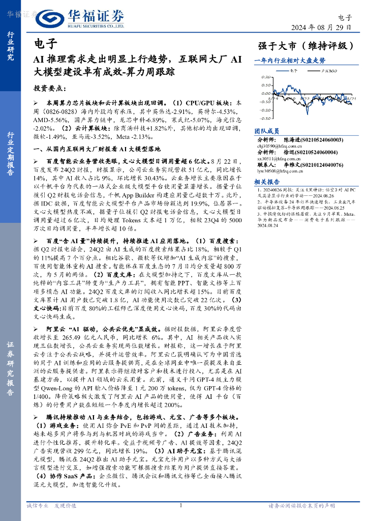 华福证券:电子行业算力周跟踪:AI推理需求走出明显上行趋势,互联网大厂AI大模型建设卓有成效.pdf