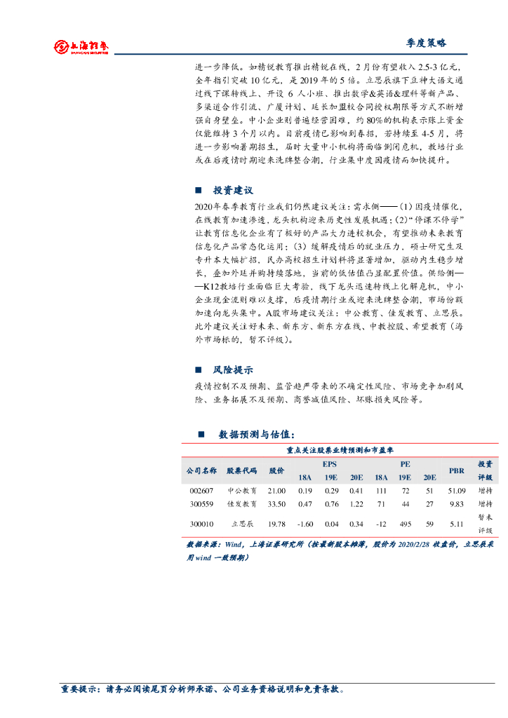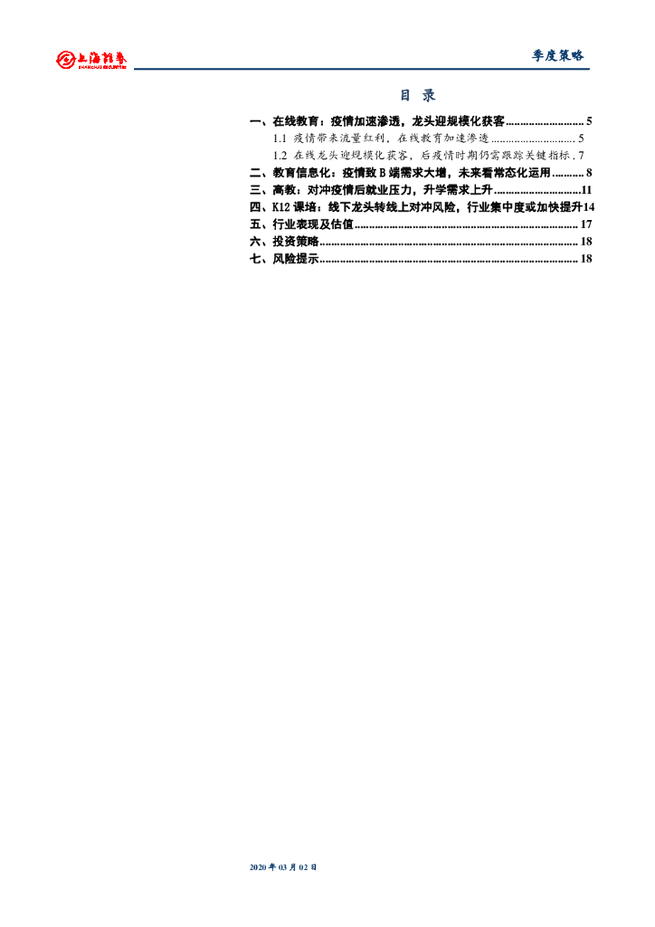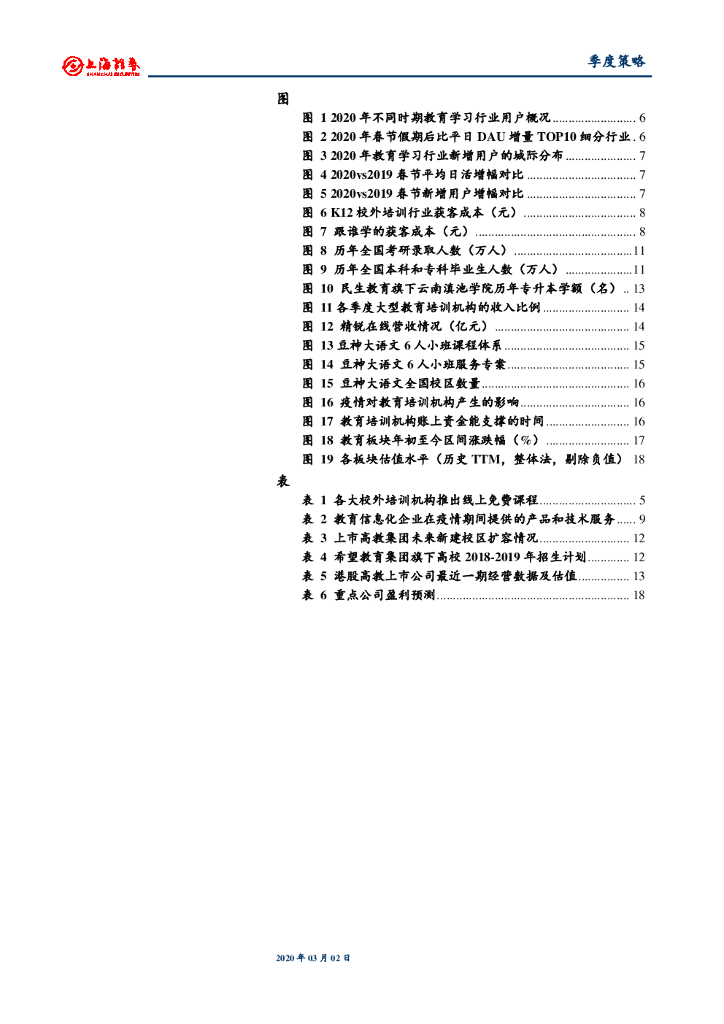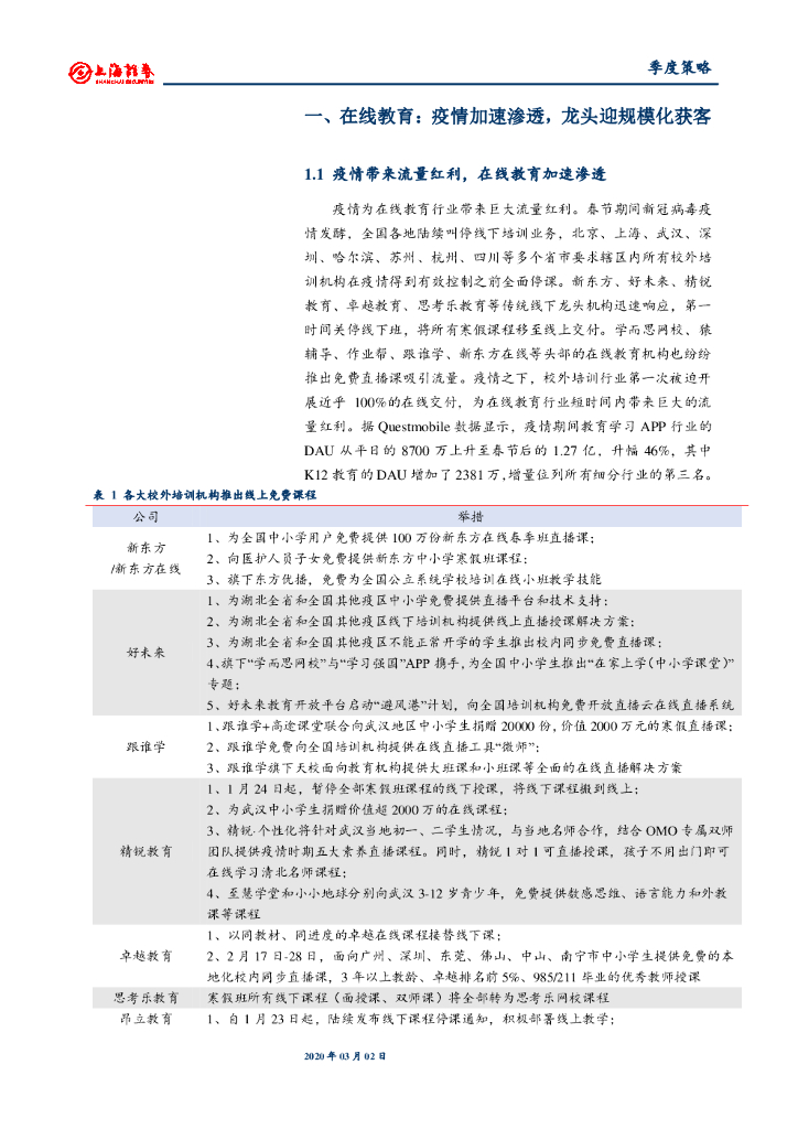 上海证券:教育行业2020年春季投资策略:疫情催化在线教育和教育信息化,民办高教迎升学需求上行.pdf