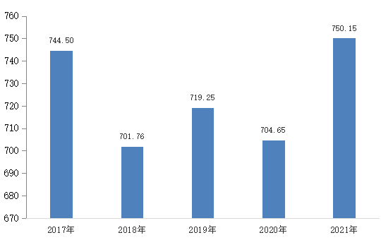 图1:2017—2021年全市粮食产量