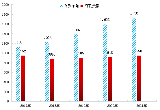 图2:2017—2021年金融机构人民币存贷款余额