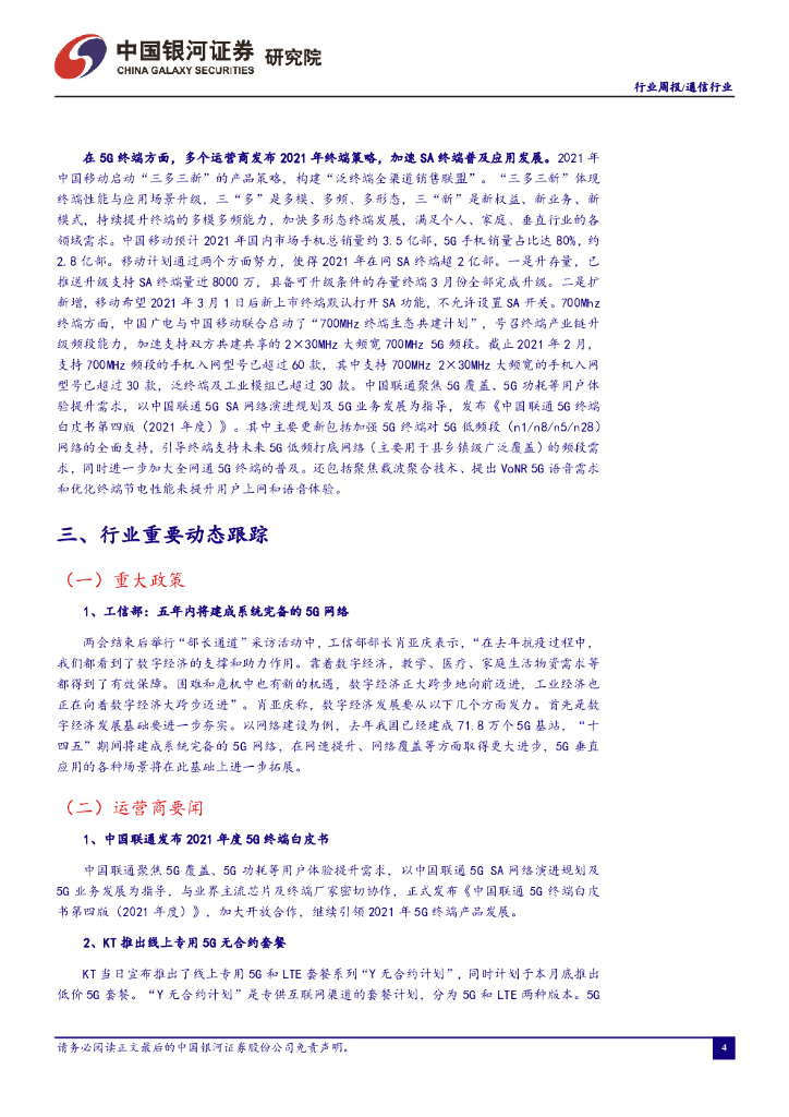 中国银河:通信行业周报:双共建共享或使5G建设稳中有进,新终端策略加快应用成熟.pdf