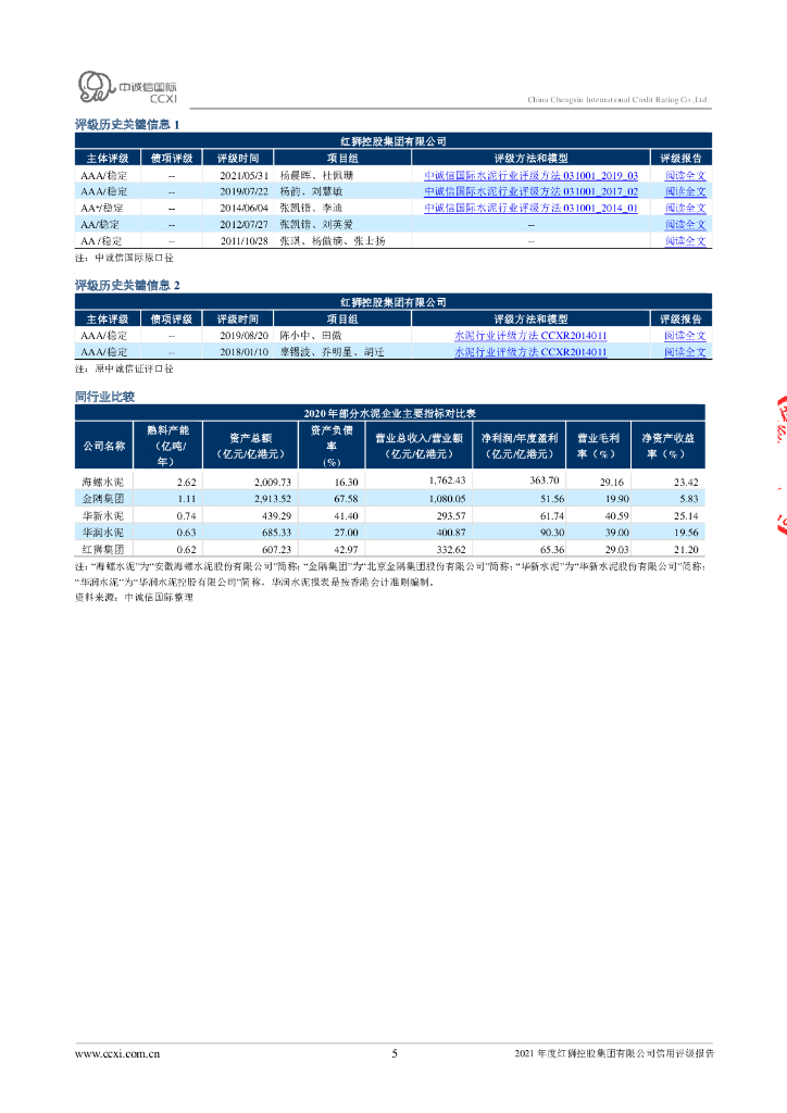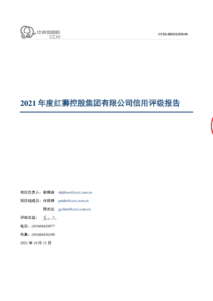 中诚信:2021年度红狮控股集团有限公司信用评级报告.pdf