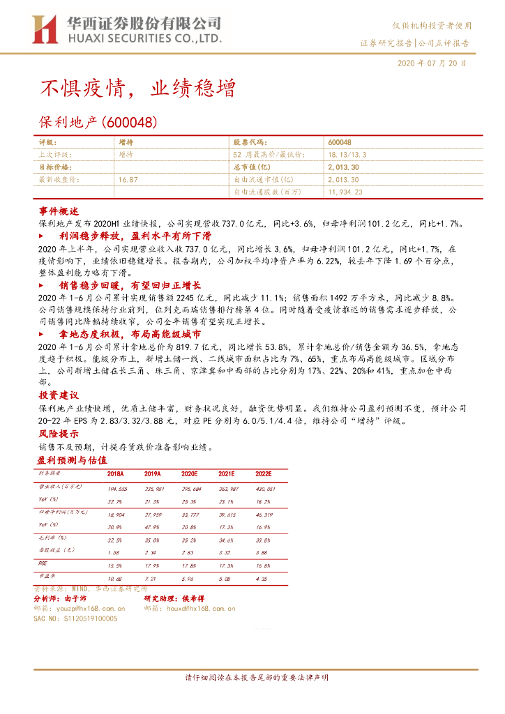 华西证券:保利地产(600048)-不惧疫情,业绩稳增.pdf