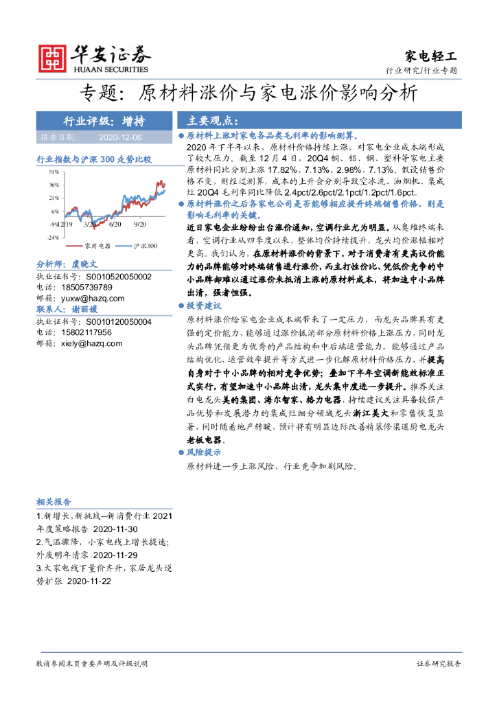 华安证券:家电轻工行业专题:原材料涨价与家电涨价影响分析.pdf