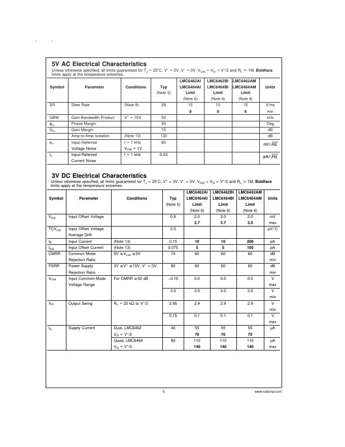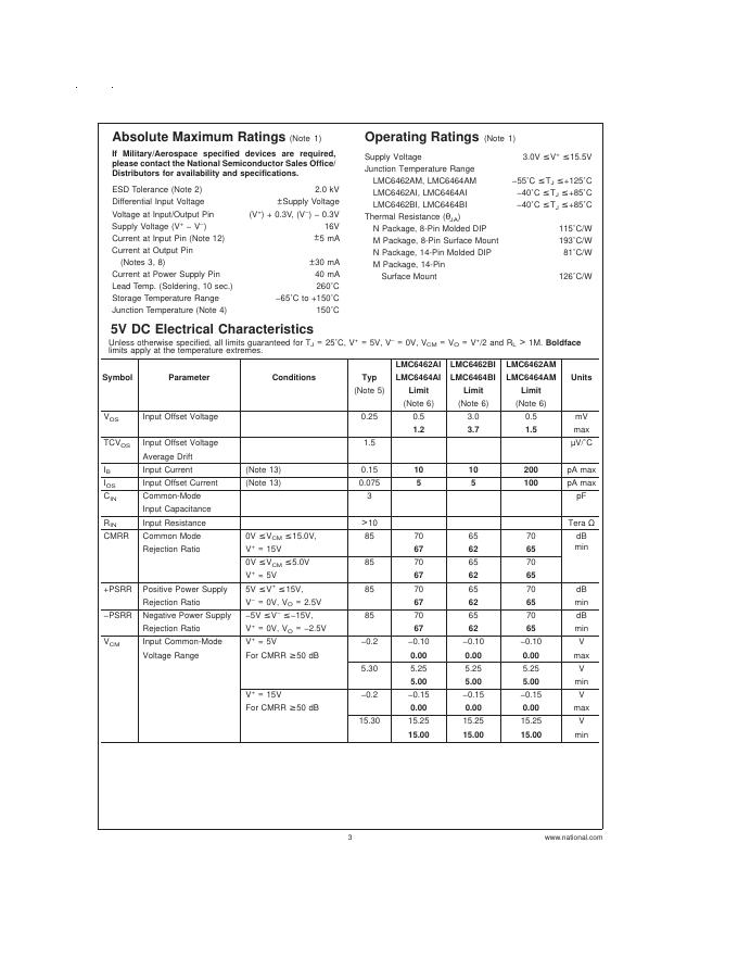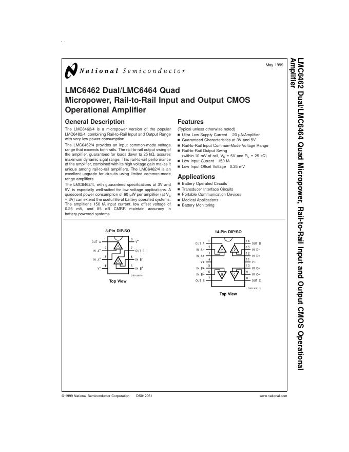 National Semiconductor LMC6462 Dual/LMC6464 Quad 数据手册.pdf