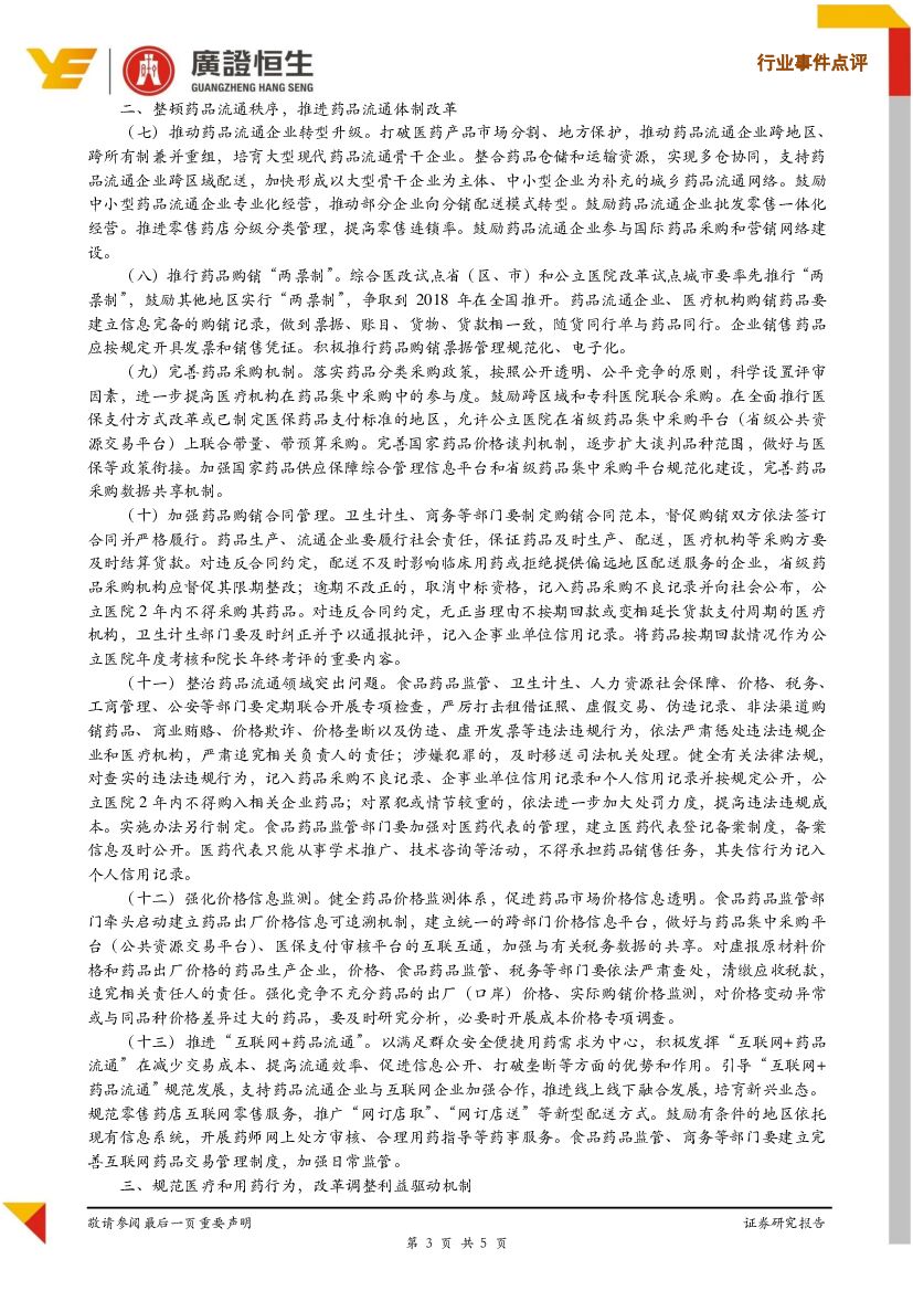 广证恒生证券研究所:医药生物行业事件点评:国务院发文深化药品供给侧改革,优质药企、流通龙头、第三方诊断等有望受益.pdf