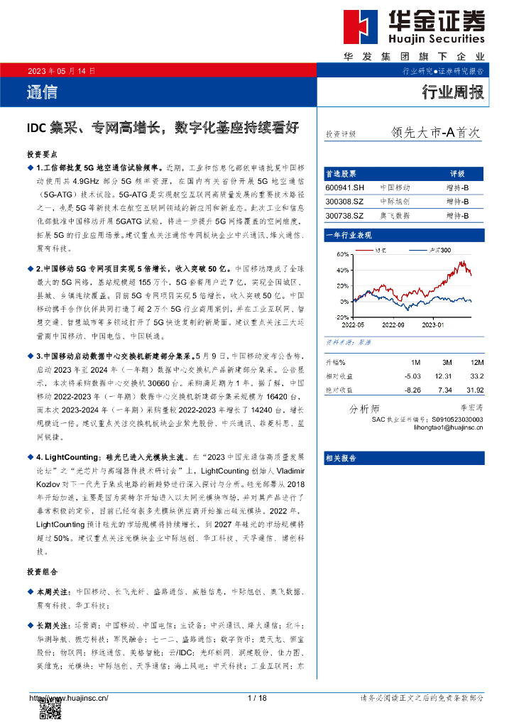 华金证券:通信行业周报:IDC集采、专网高增长,数字化基座持续看好.pdf
