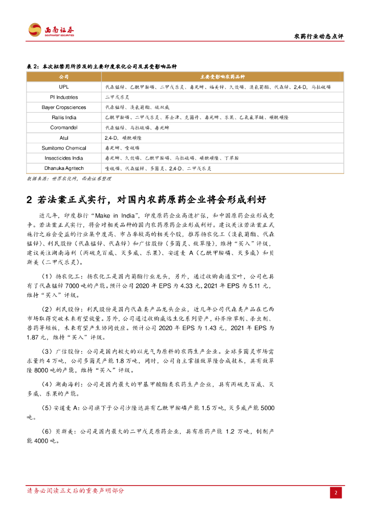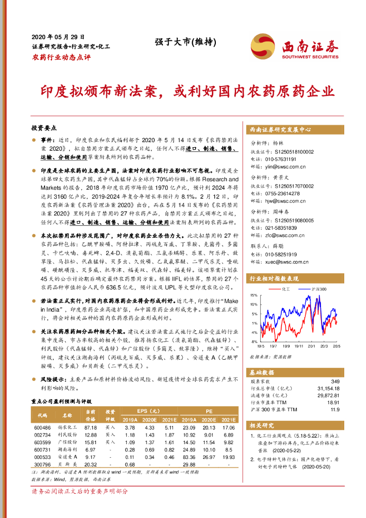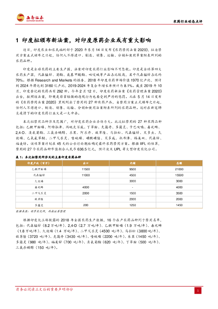 西南证券:农药行业动态点评:印度拟颁布新法案,或利好国内农药原药企业.pdf