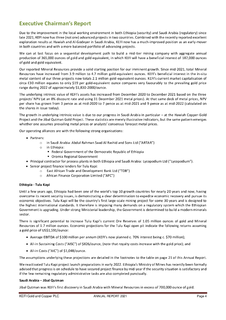 KEFI Gold and Copper Plc(KEFI)2021财年年度报告(英文版).pdf