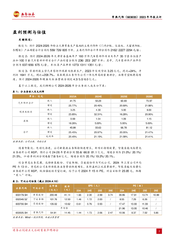 西南证券:常熟汽饰(603035)-2023年年报点评:新产能提供业绩增量,智能座舱前景广阔.pdf