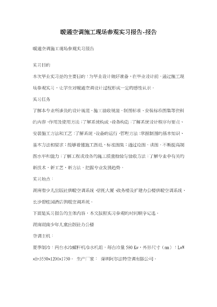 暖通空调施工现场参观实习报告.pdf