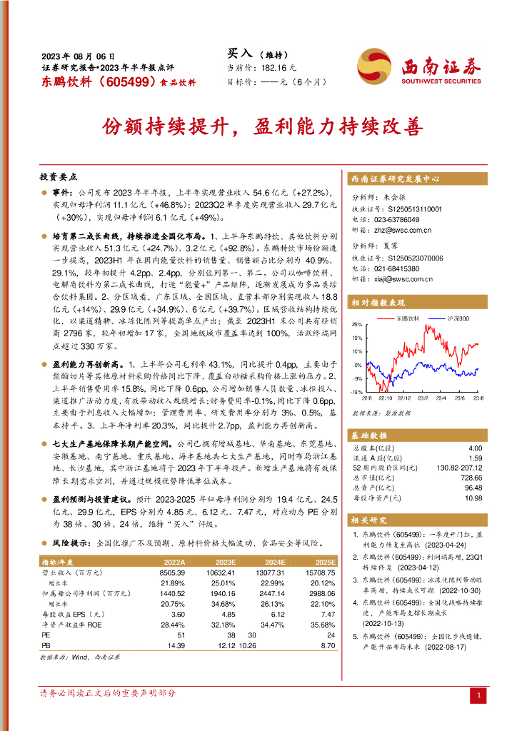 西南证券:东鹏饮料(605499)-份额持续提升,盈利能力持续改善.pdf