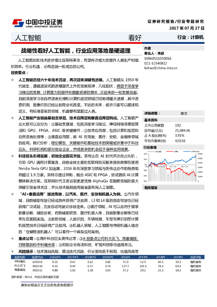 中投证券:战略性看好人工智能,行业应用落地是硬道理.pdf