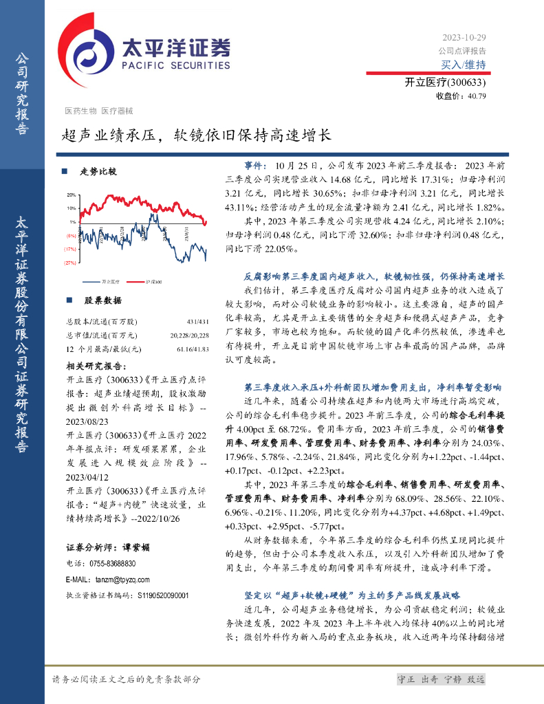 太平洋证券:开立医疗(300633)-超声业绩承压,软镜依旧保持高速增长.pdf