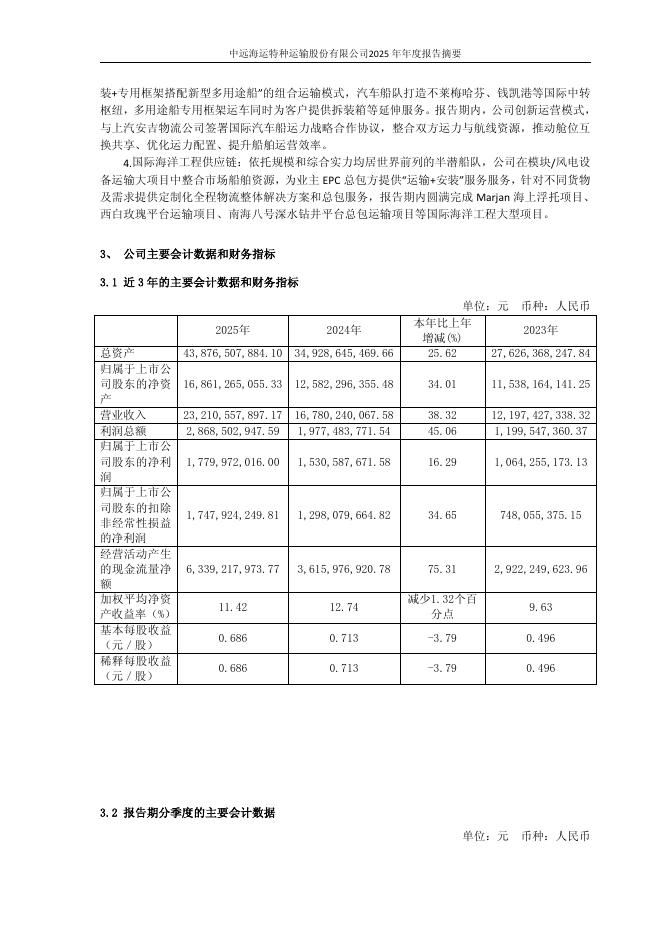 600428-中远海特:中远海运特种运输股份有限公司2025年年度报告摘要.pdf
