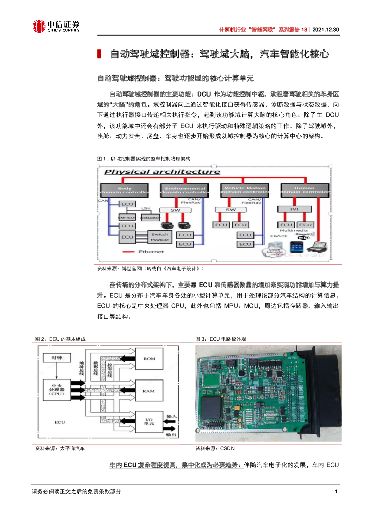 中信证券:“智能网联”系列报告18:自动驾驶域控制器,汽车智能化计算中枢.pdf