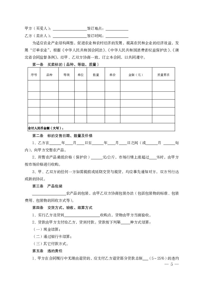 湖北省农产品订单(买卖)合同.pdf