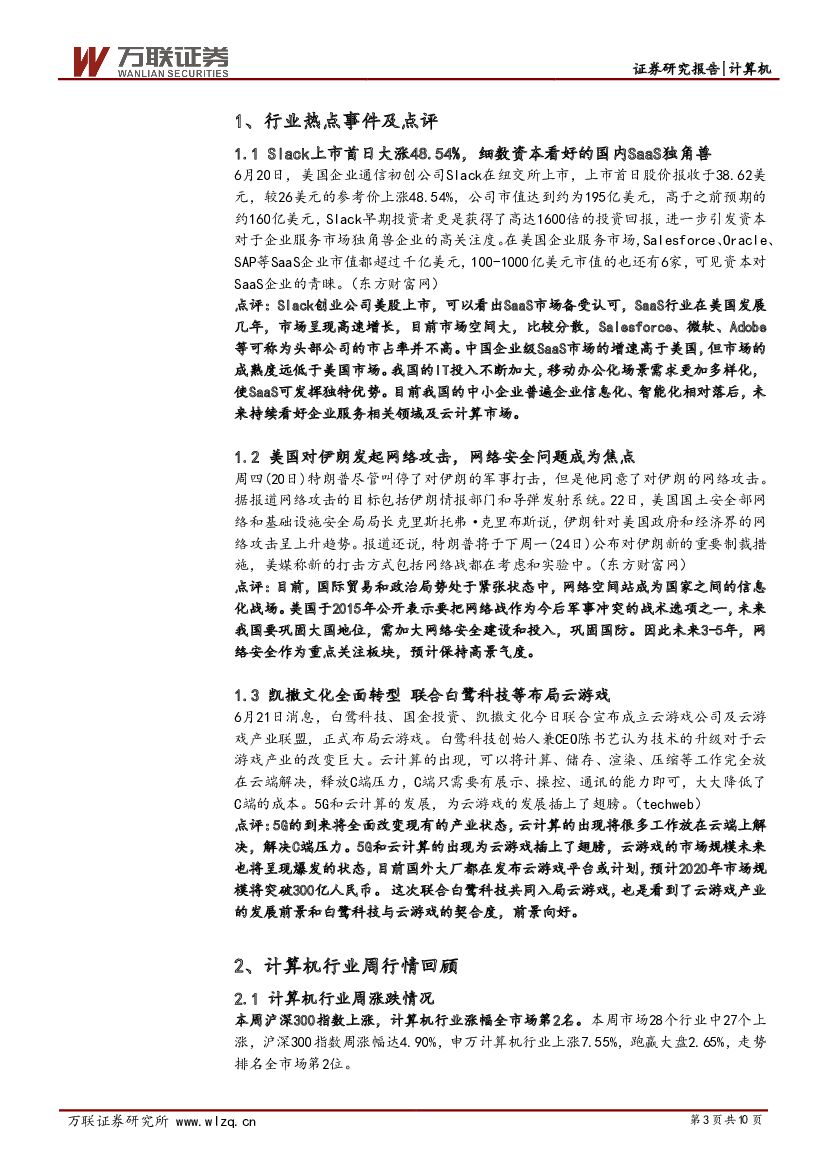 万联证券:计算机行业周观点报告:持续关注SaaS领域和网络安全产业.pdf
