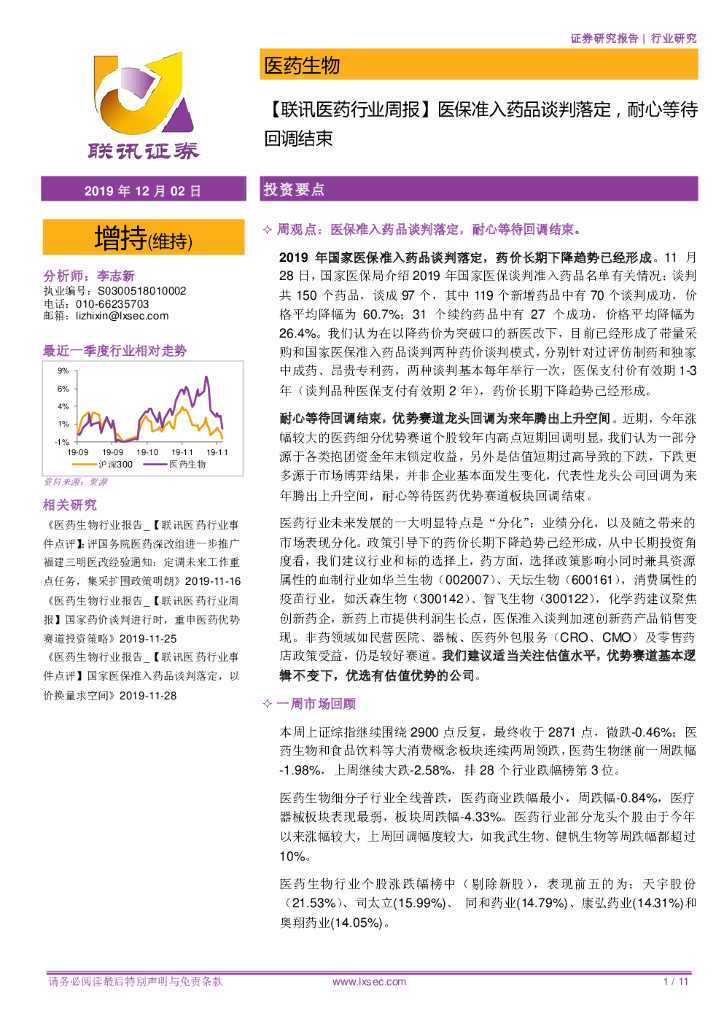 联讯证券:【联讯医药行业周报】医保准入药品谈判落定,耐心等待回调结束.pdf