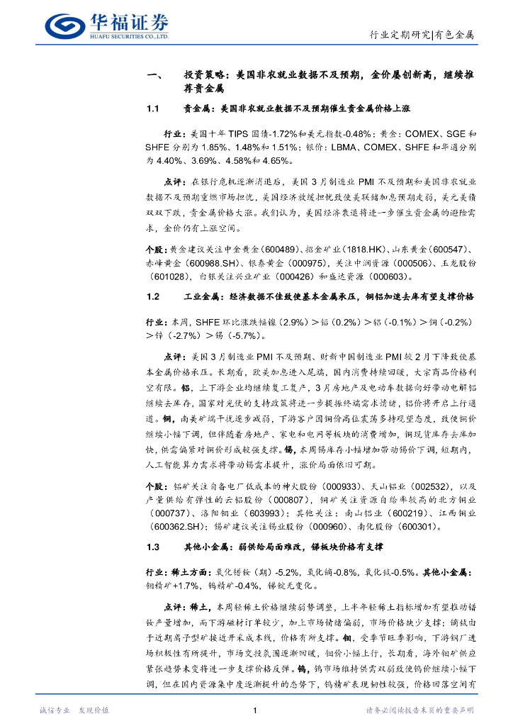 华福证券:有色金属行业周报:美国非农就业数据不及预期,金价屡创新高,继续推荐贵金属.pdf