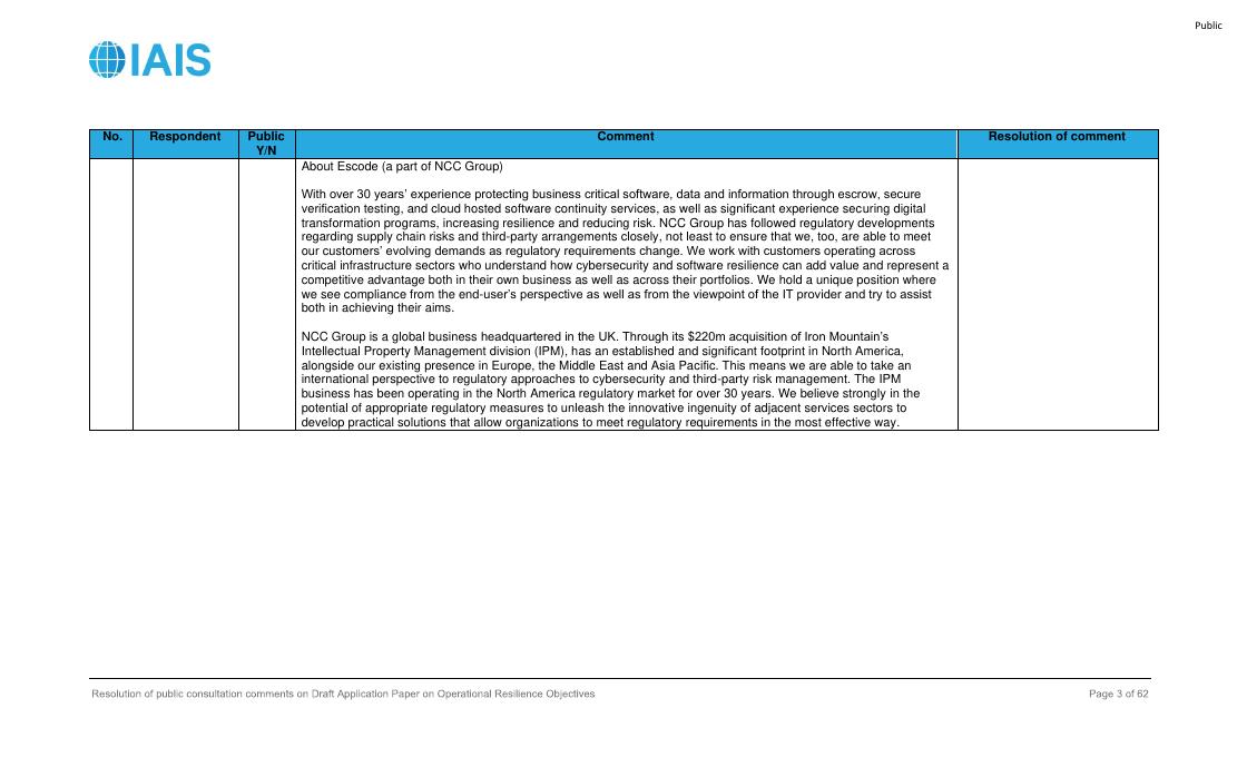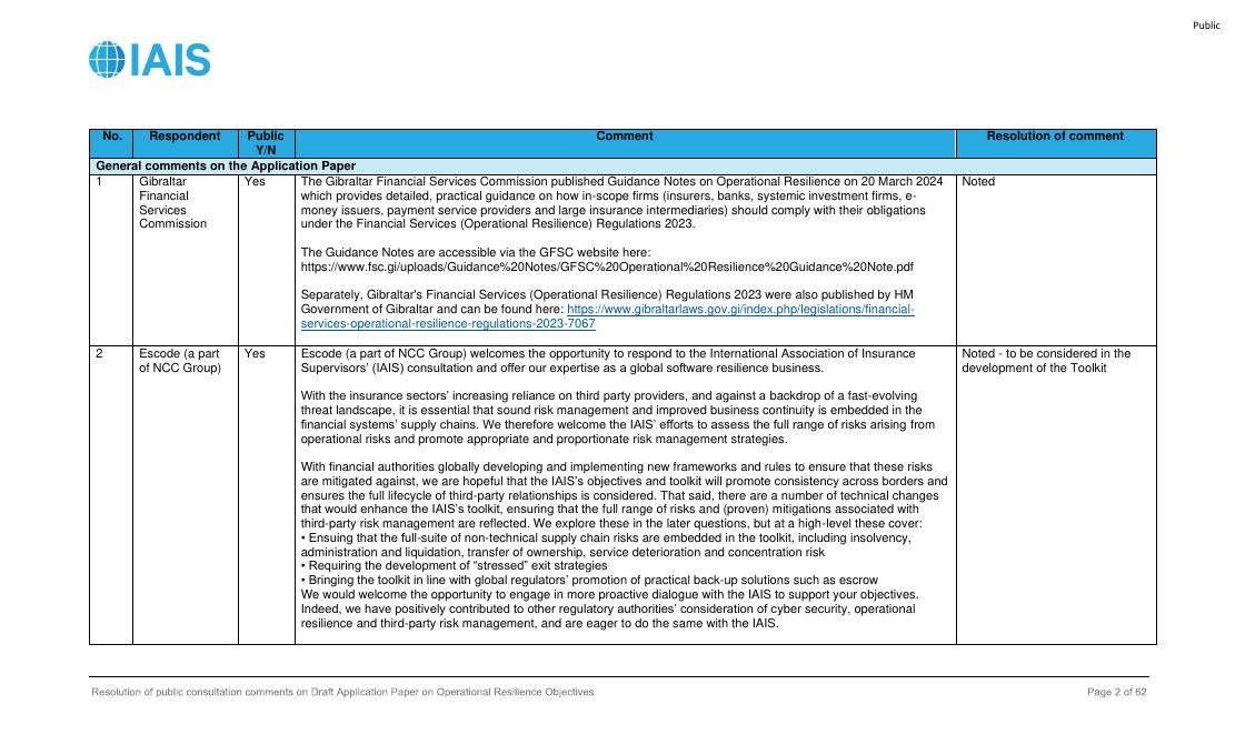 国际保险监督官协会(IAIS):2025年关于运营韧性目标的申请文件草案的公众咨询意见决议报告(英文版).pdf