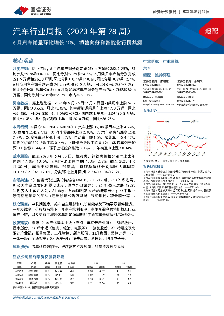 国信证券:汽车行业周报(2023年第28周):6月汽车销量环比增长10%,销售向好和智能化行情共振.pdf