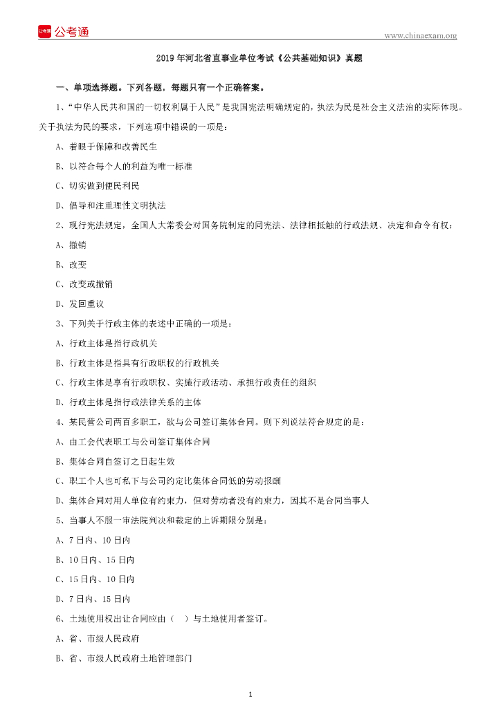 2019年河北省直事业单位考试《公共基础知识》真题.pdf