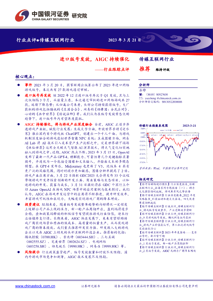 中国银河:传媒互联网行业行业跟踪点评:进口版号发放,AIGC持续催化.pdf