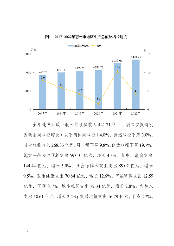 惠州市2022年国民经济和社会发展统计公报.pdf
