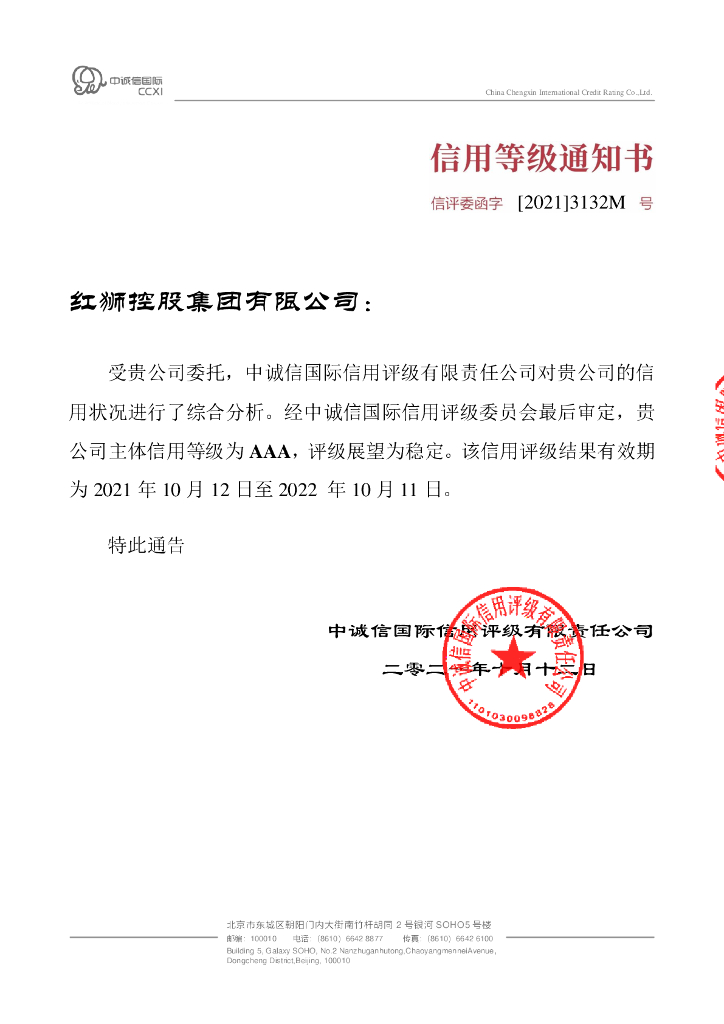 中诚信:2021年度红狮控股集团有限公司信用评级报告.pdf