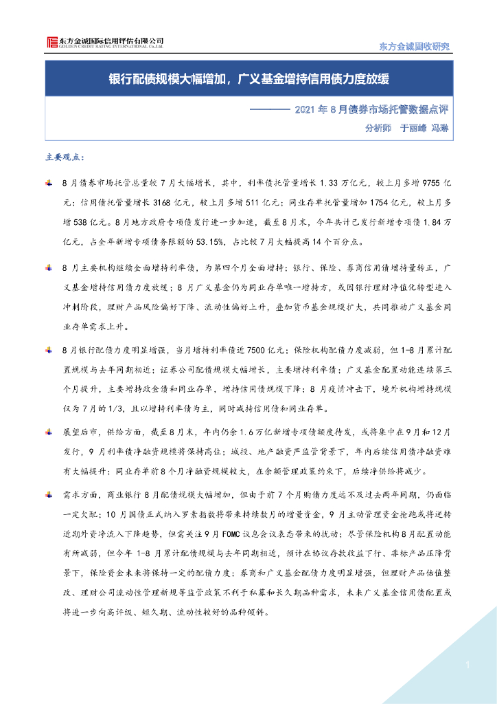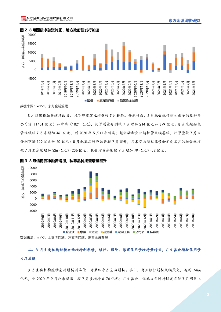东方金诚:银行大幅增配利率债,广义基金增持信用债力度放缓-8月债券市场托管数据点评.pdf