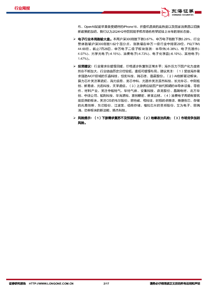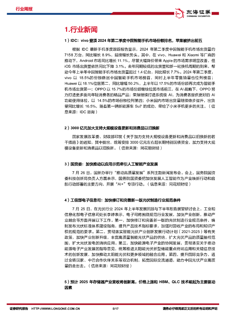 东海证券:电子行业周报:Q2中国智能手机出货量同比增长8.9%,3000亿特别国债助力消费品以旧换新.pdf