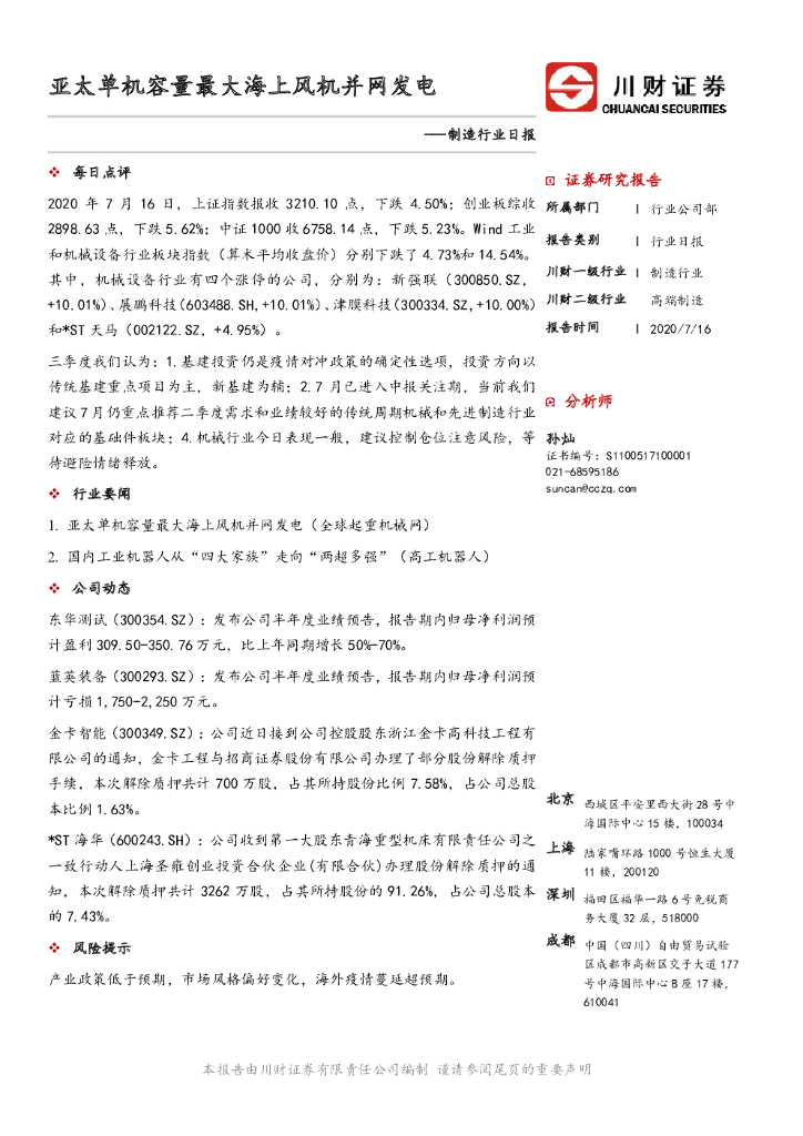 川财证券:制造行业日报:亚太单机容量最大海上风机并网发电.pdf
