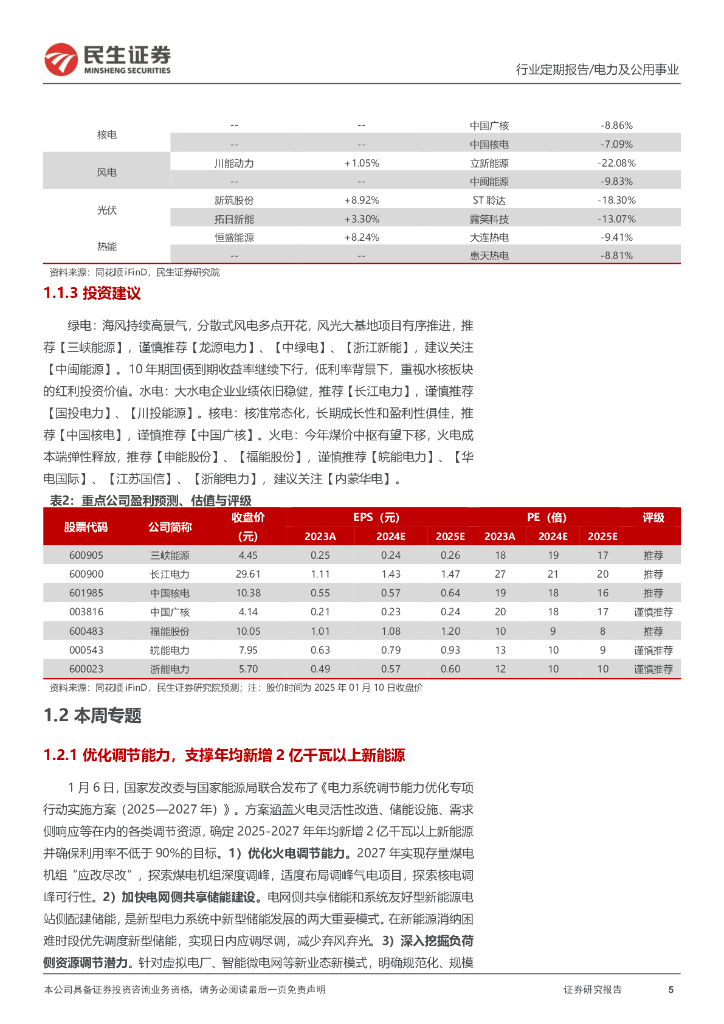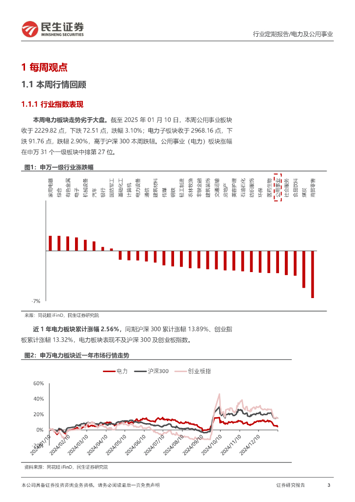 民生证券:电力及公用事业行业周报(25WK02):优化电力调节能力,源网荷储促进绿电消纳.pdf