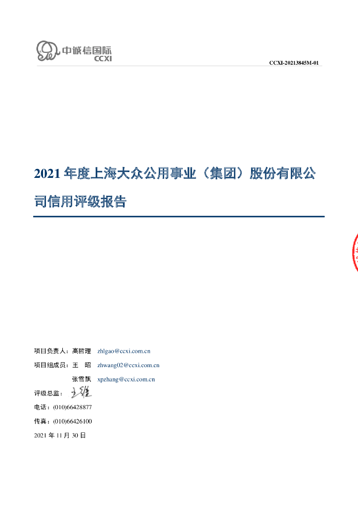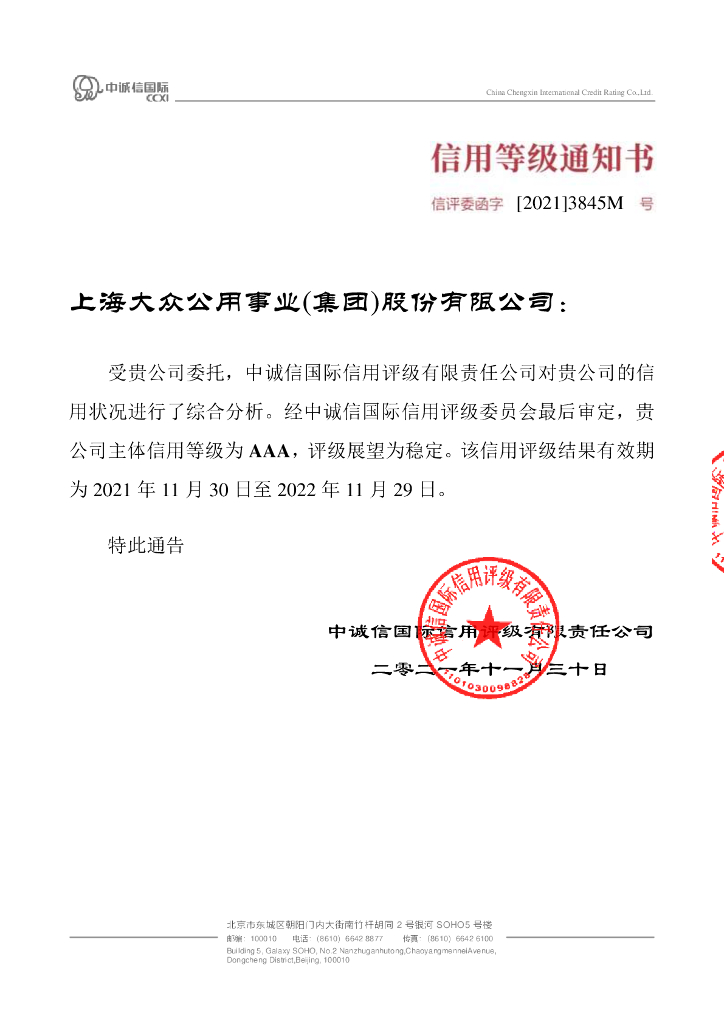 中诚信:2021年度上海大众公用事业(集团)股份有限公司信用评级报告.pdf
