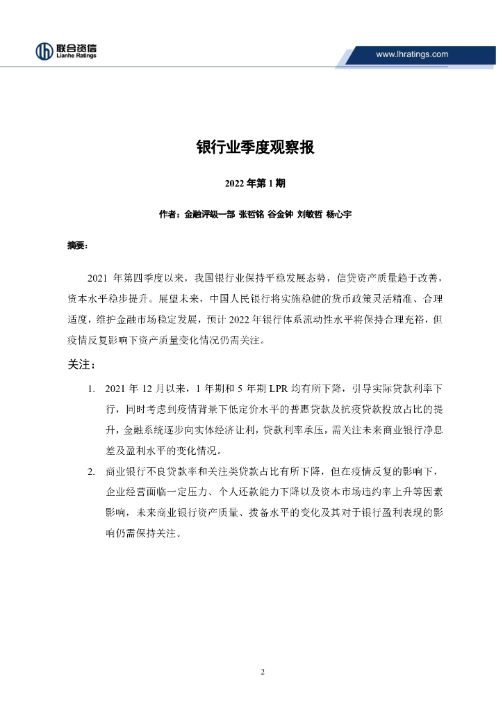 联合资信:银行业季度观察报(2022年第1期).pdf