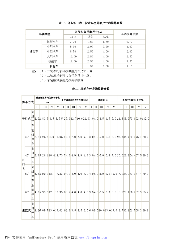 住宅区停车位设计规范相关表格.pdf