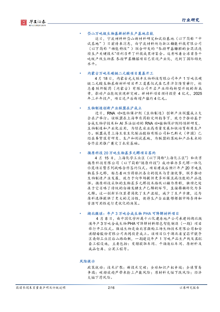 华安证券:基础化工行业周报:合成生物学周报:岱山生物基材料生产基地启航,万吨长碳链二元酸项目奠基开工.pdf