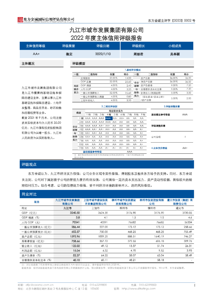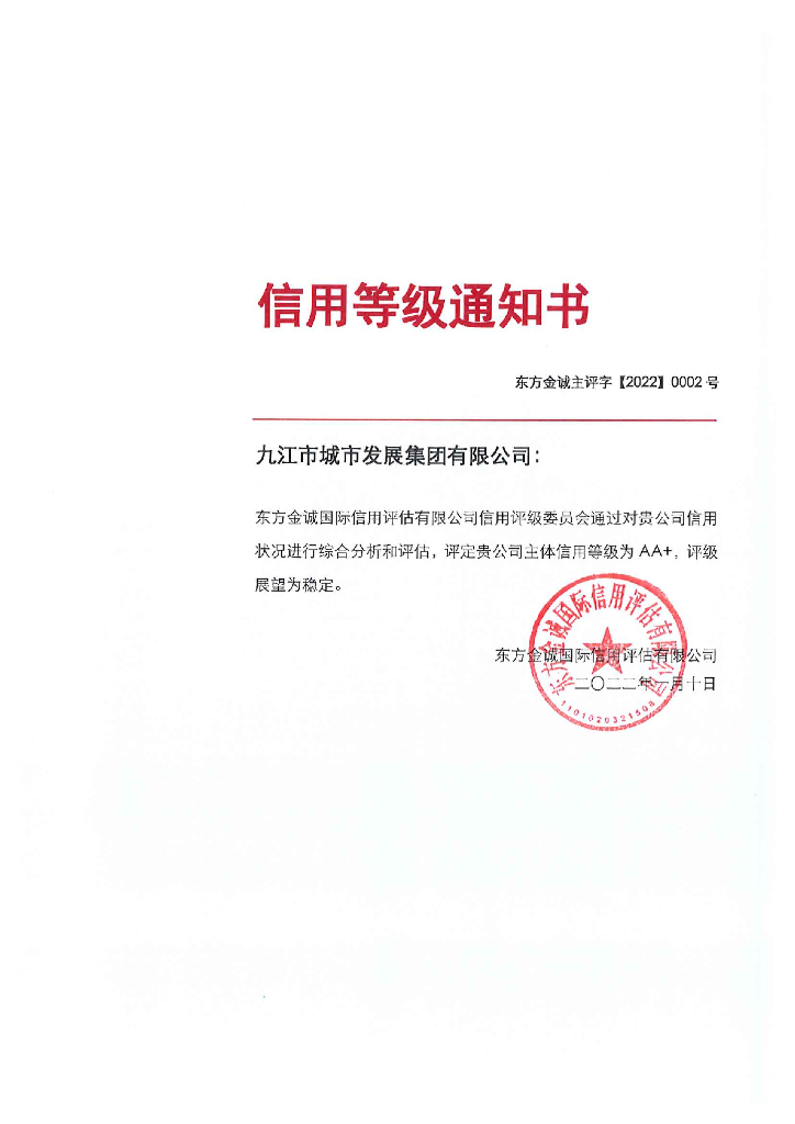 东方金诚:九江市城市发展集团有限公司主体信用评级报告及跟踪评级安排.pdf