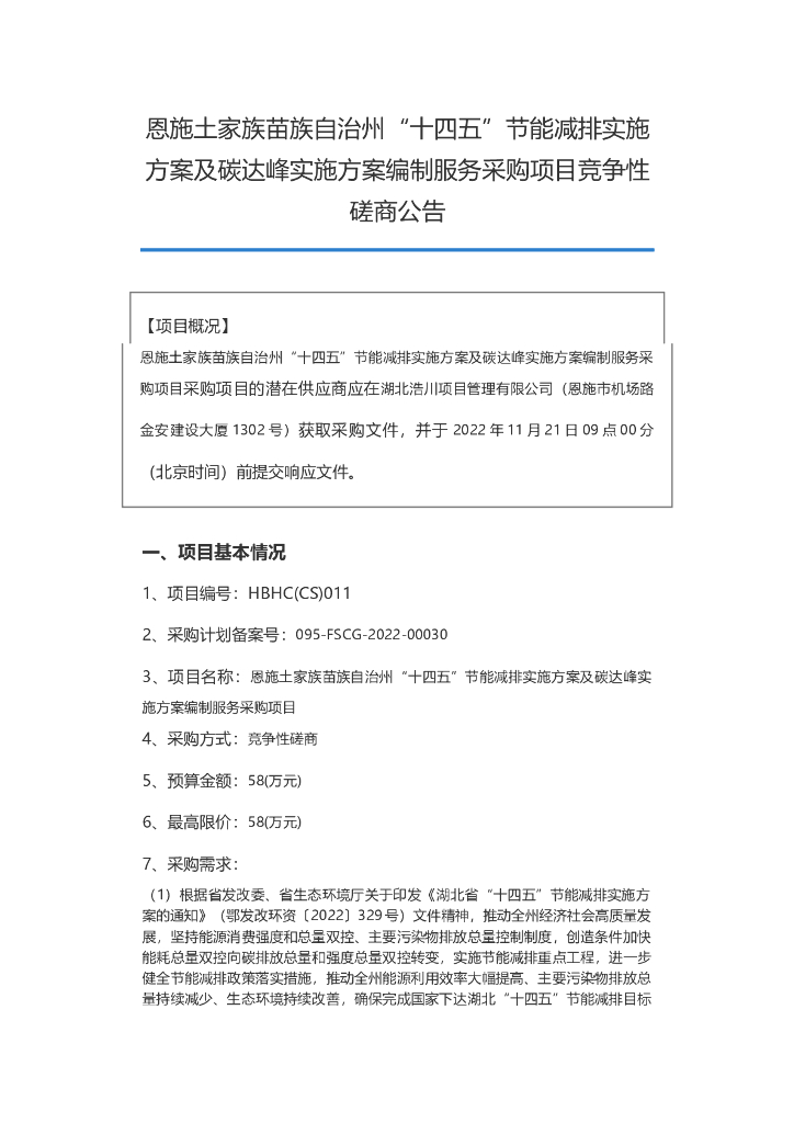 湖北恩施“十四五”节能减排实施方案及碳达峰实施方案编制.doc