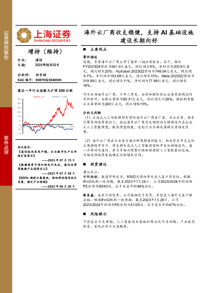 上海证券:通信:海外云厂商收支稳健,支持AI基础设施建设长期向好.pdf