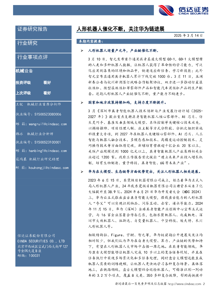 信达证券:机械设备:人形机器人催化不断,关注华为链进展.pdf