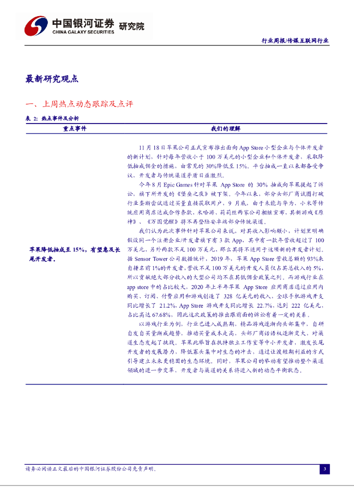 中国银河:传媒互联网行业周报:苹果降抽成有望惠及中小开发者,精品化发展为游戏行业长期趋势.pdf