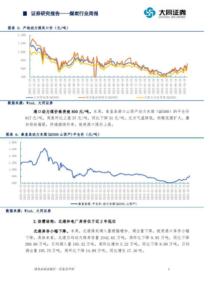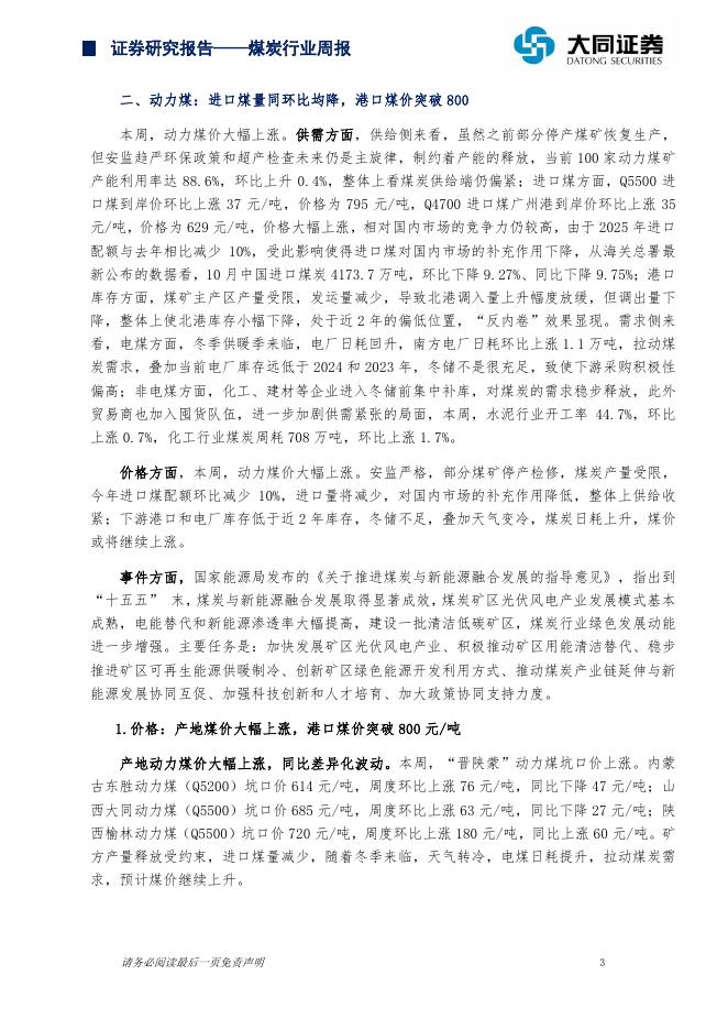 大同证券:煤炭行业周报:港口煤价突破800,供需收紧有望使价格继续上涨.pdf