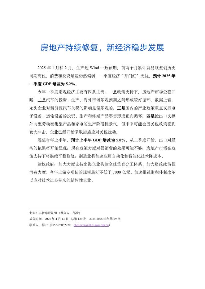 北大汇丰商学院:2025年第一季度宏观经济分析报告.pdf