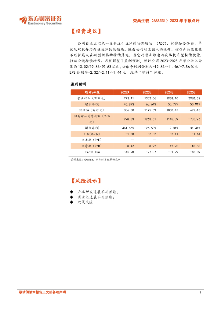 东方财富证券:荣昌生物(688331)-2023年中报点评:核心产品持续放量,研发顺利推进.pdf