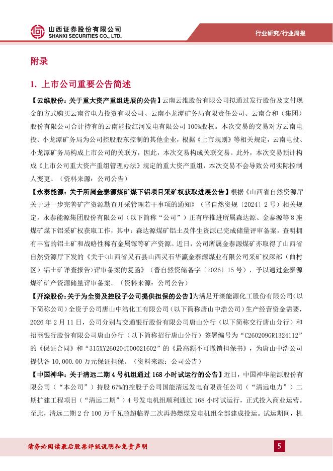英大证券:电力能源行业周报